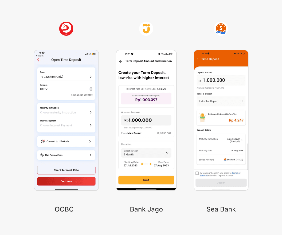 - To achieve management expectation of how the product will look like, I conducted competitor research of fiat time deposit to identify user habits and behaviors.